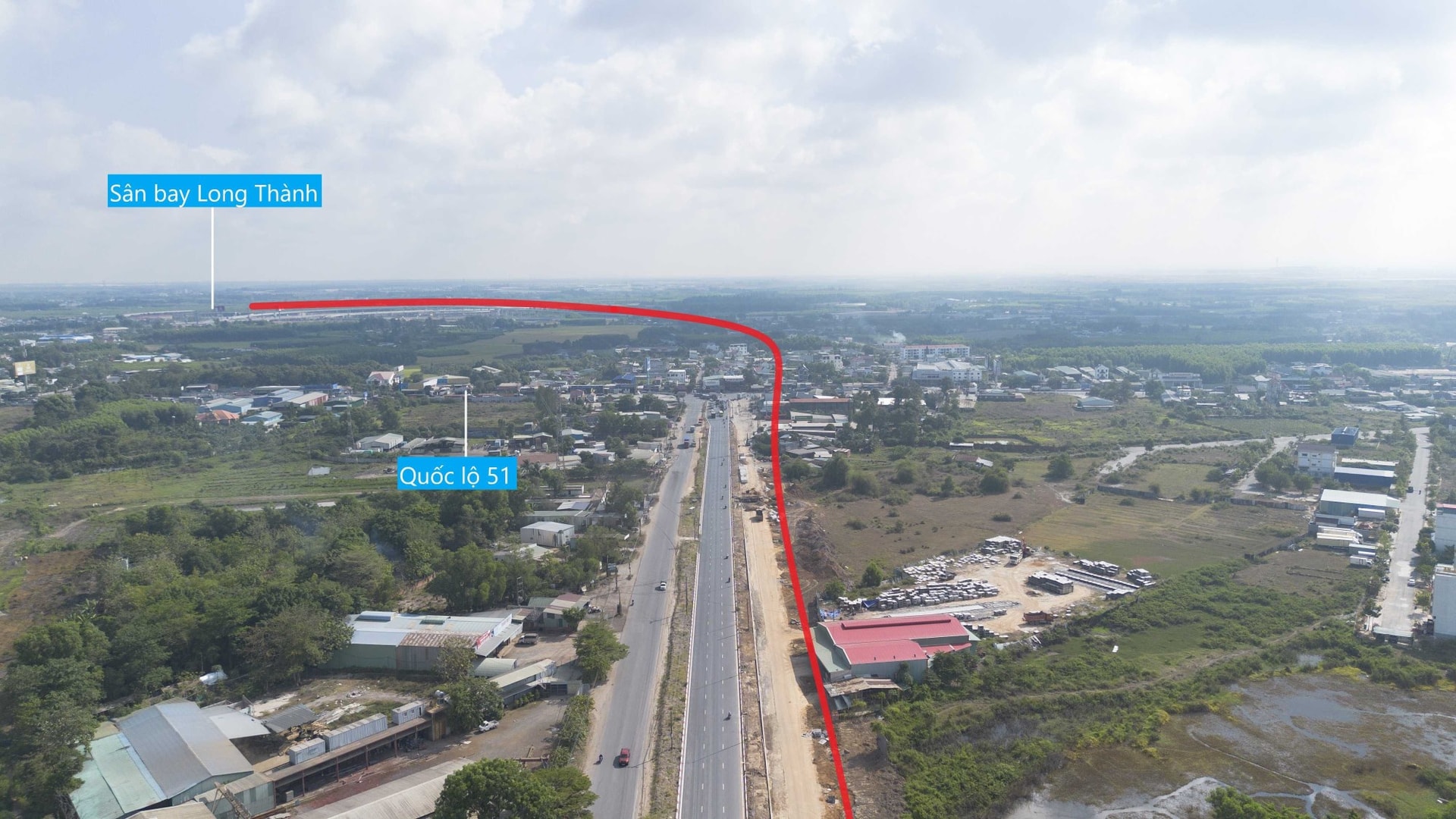 Đoạn 25B đấu nối vào quốc lộ 51, nơi tuyến metro sẽ vượt qua để vào sân bay Long Thành.