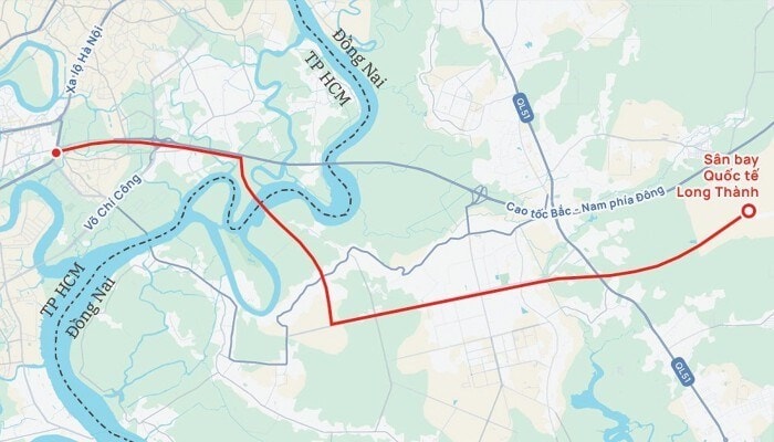 Hướng tuyến đường sắt Thủ Thiêm - Long Thành.