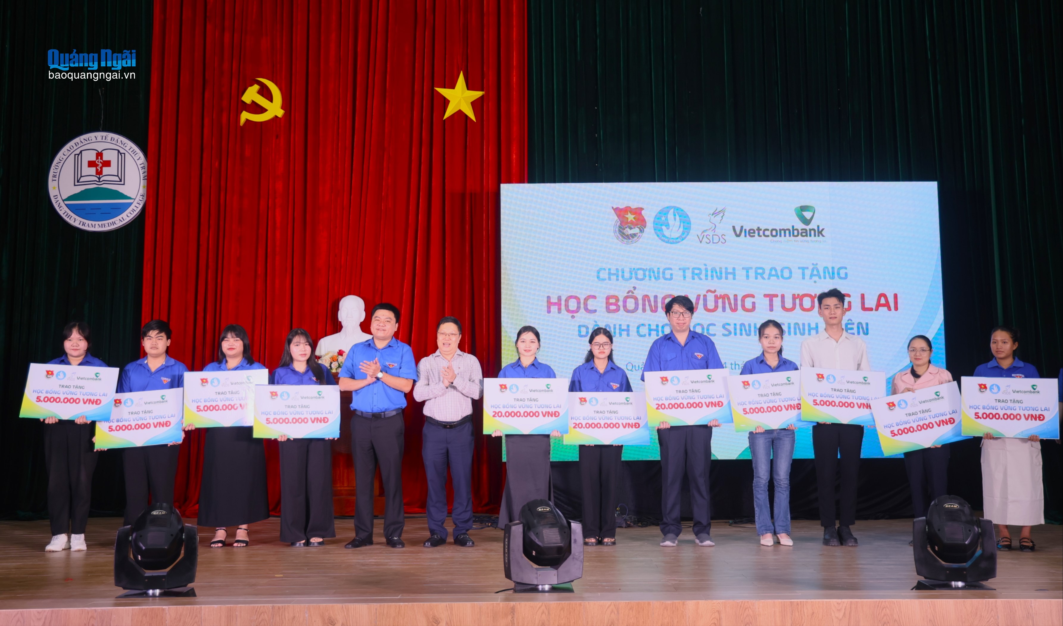 Cũng tại chương trình, Ban Thường vụ Tỉnh đoàn và Ban Thư ký Hội Sinh viên Việt Nam tỉnh Quảng Ngãi phối hợp với Ngân hàng TMCP Ngoại thương Việt Nam - Chi nhánh Dung Quất trao 17 suất học bổng “Vững tương lai” cho các học sinh, sinh viên có hoàn cảnh khó khăn nỗ lực vượt khó vươn lên trong học tập.