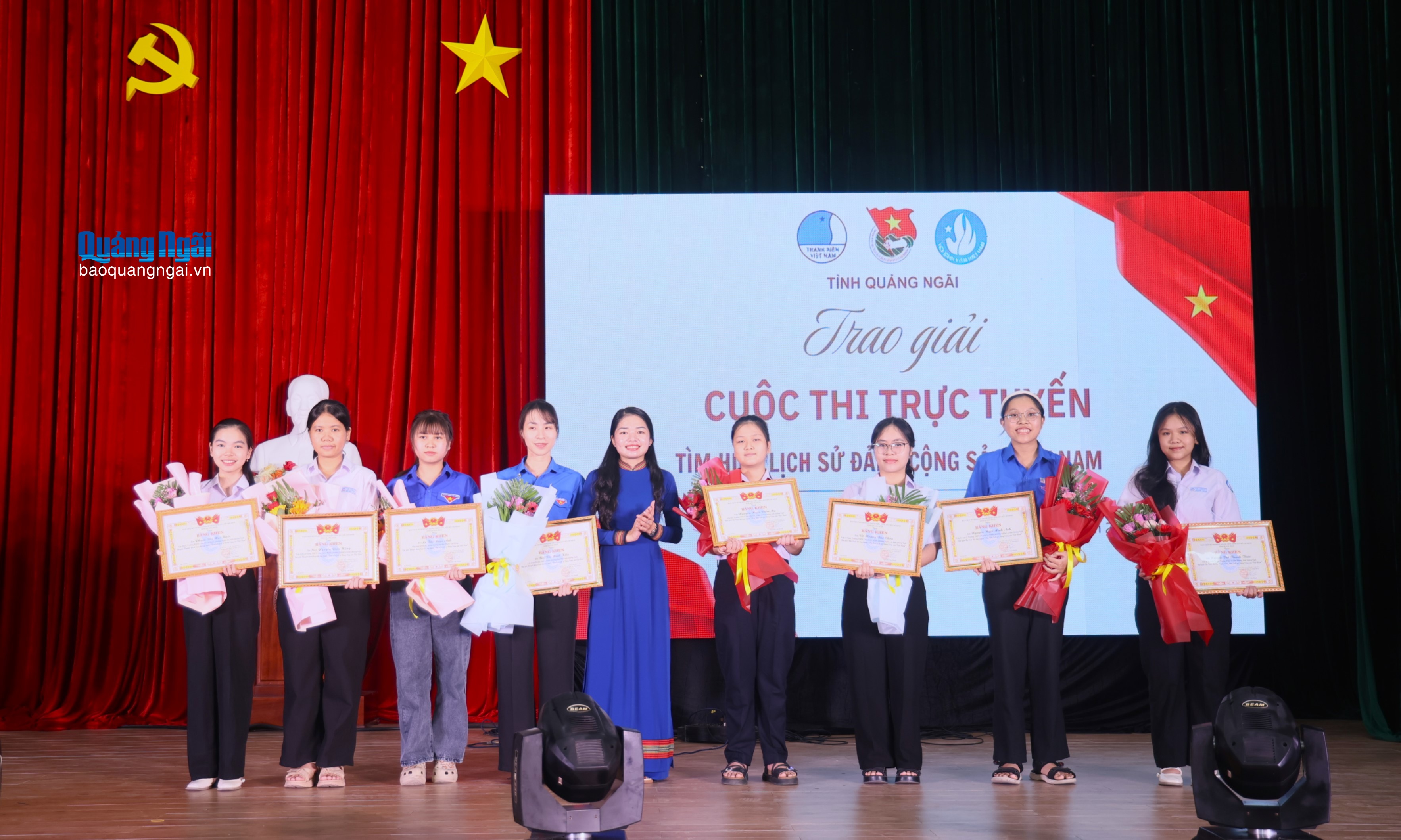 Ngoài ra, tại chương trình, Tỉnh đoàn đã trao giải Cuộc thi “Tìm hiểu lịch sử Đảng Cộng sản Việt Nam” cho các tập thể, cá nhân đoạt thành tích cao. Giải Nhất được trao cho thí sinh Nguyễn Nhật Quyên, lớp 12 Sử - Địa, Trường THPT Chuyên Lê Khiết.