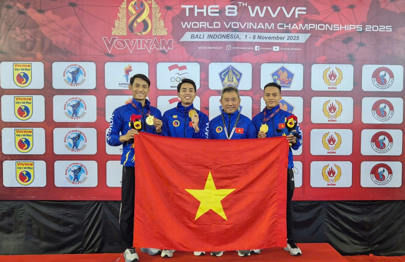 Thầy giáo - giáo viên, huấn luyện viên Nguyễn Tứ Cường đoạt thành tích ấn tượng tại Giải Vô địch Vovinam Thế giới lần thứ 8 - năm 2025 tại Bali (Indonesia). Ảnh: FBNV