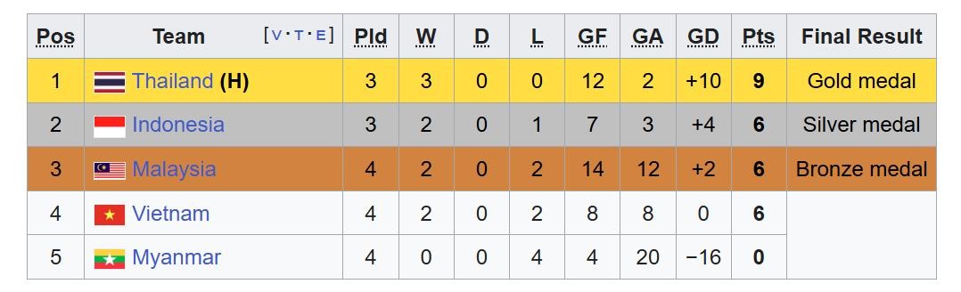 Cơ hội duy nhất để Việt Nam có huy chương là Thái Lan thắng đậm Indonesia với cách biệt 5 bàn.