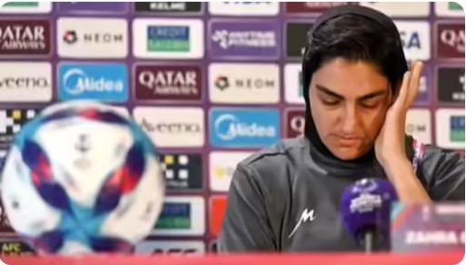Giây phút trầm lặng vì nhói đau của đội trưởng Zahra Ghanbari. Ảnh:TOI