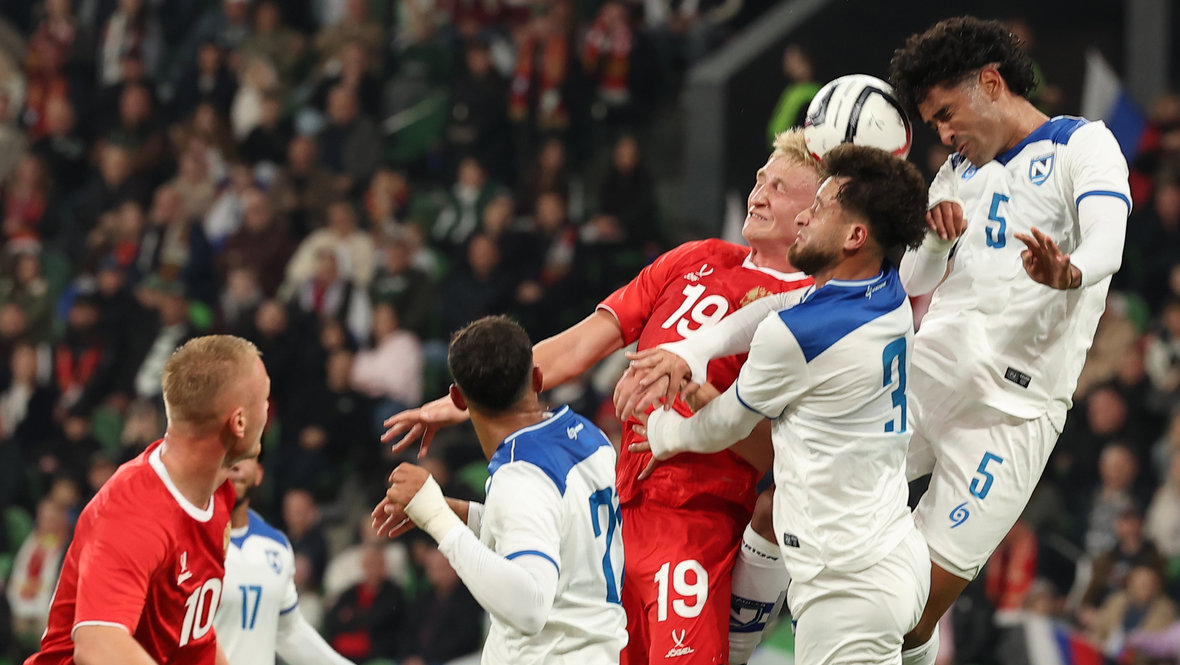 Nga (đỏ) trong trận thắng Nicaragua 3-1 tại Krasnodar. Ảnh: SE.