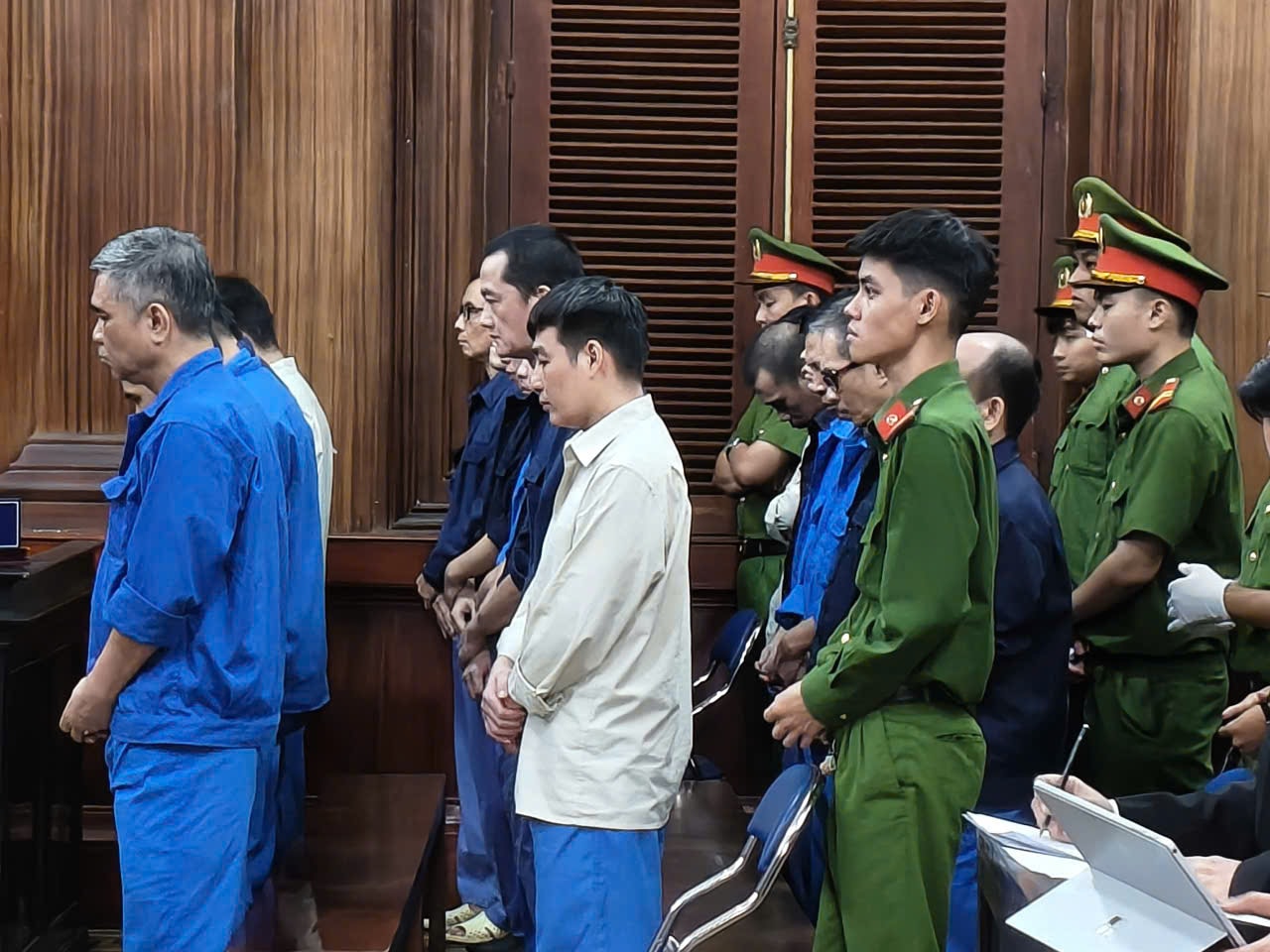 Các bị cáo tại phiên tòa. Ảnh: Nghiêm Ý