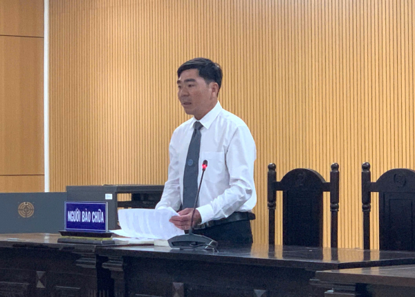 Luật sư Dương Lê Sơn, Phó trưởng Đoàn Luật sư Đắk Lắk đại diện bào chữa cho bị cáo Thắng tại tòa.