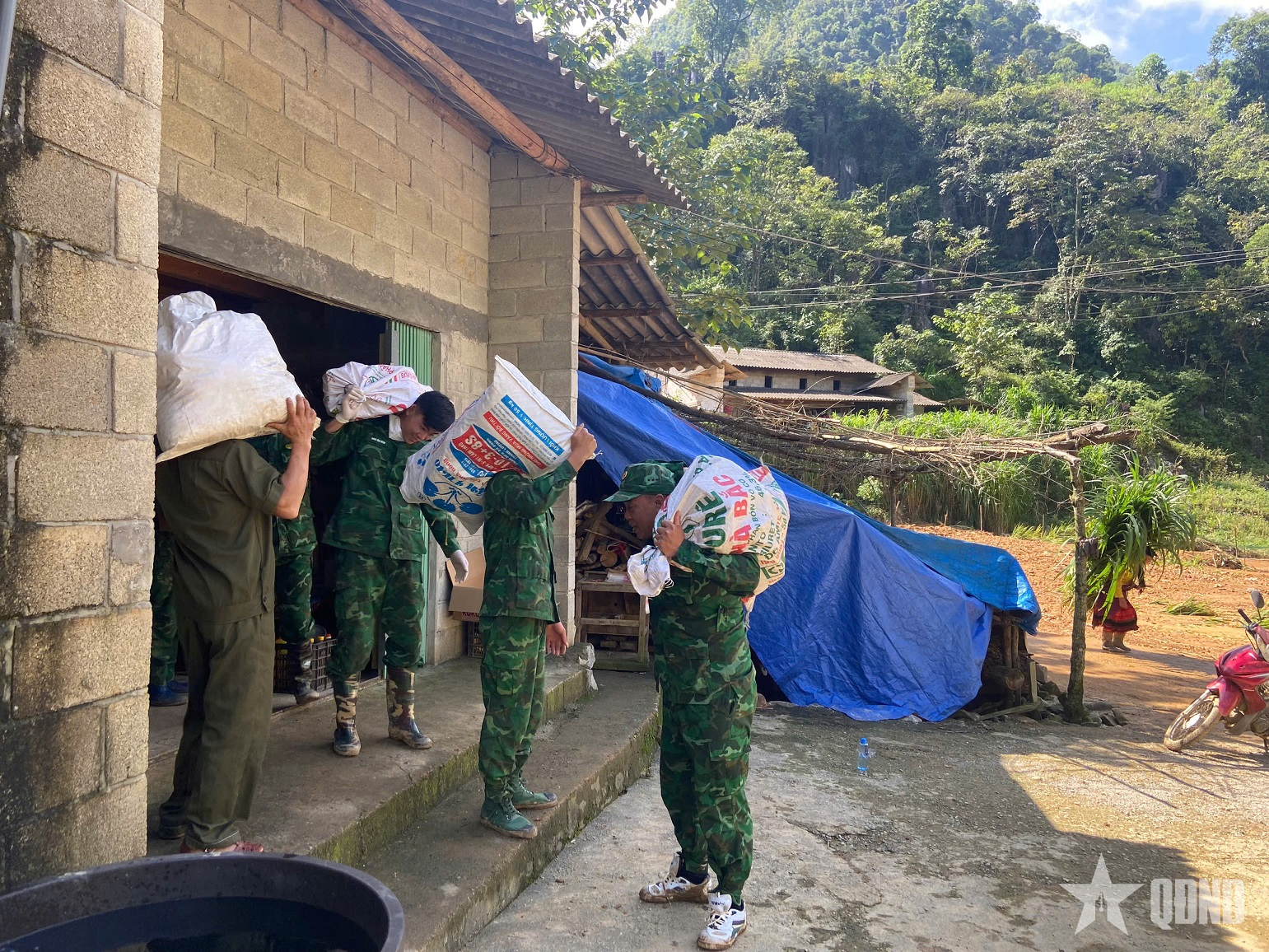Cùng với đó, đơn vị nhanh chóng cơ động một bộ phận đến thôn Mã Lầu A, khu vực có nguy cơ sạt lở cao giúp dân chằng buộc, gia cố các công trình dân sinh.