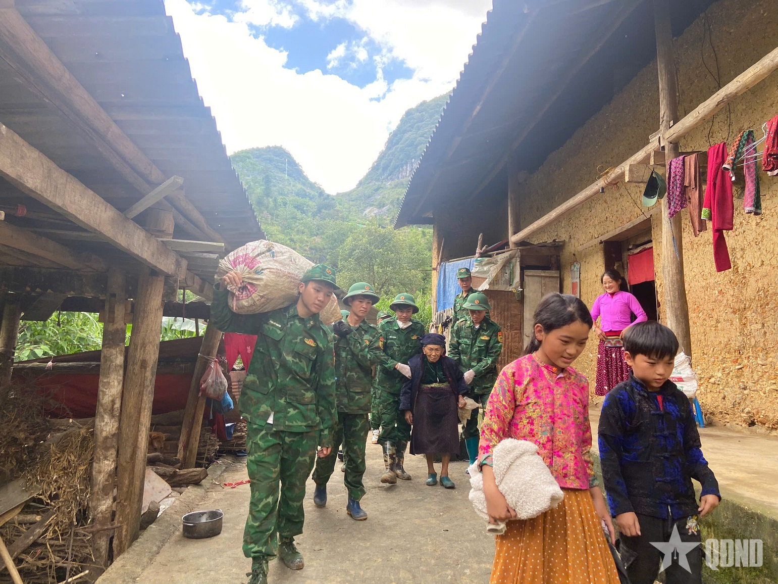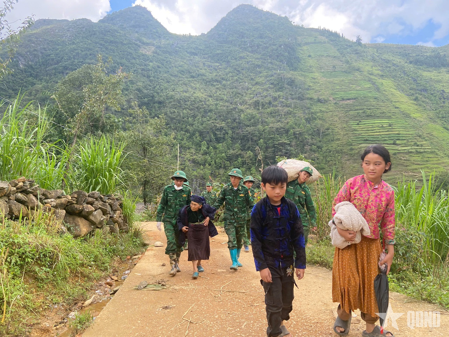 Một số hình ảnh bộ đội biên phòng Lũng Cú giúp nhân dân di dời người và tài sản đến nơi an toàn.