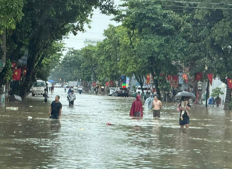 Ngập úng cục bộ tại nhiều điểm trên các tuyến đường với độ sâu từ 0,5m đến 1m gây nên tình trạng ách tắc giao thông cục bộ. Cùng với đó, nước cũng tràn nhà khiến tài sản của nhiều hộ dân bị hư hỏng.