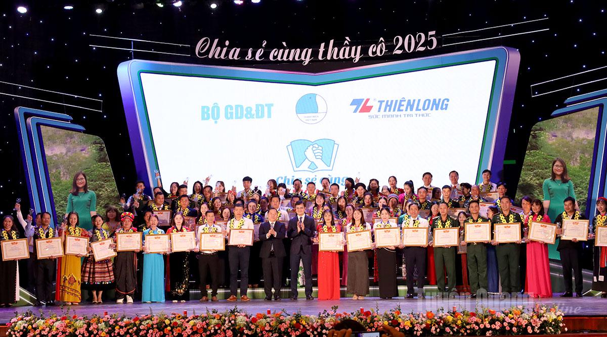 Các thầy, cô giáo Tuyên Quang chụp ảnh lưu niệm tại Lễ tuyên dương “Chia sẻ cùng thầy cô” năm 2025.
