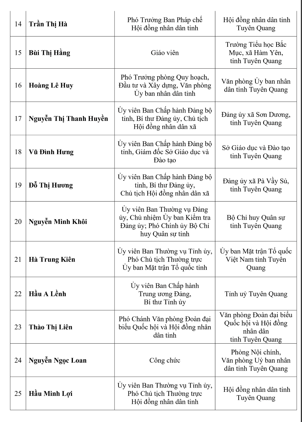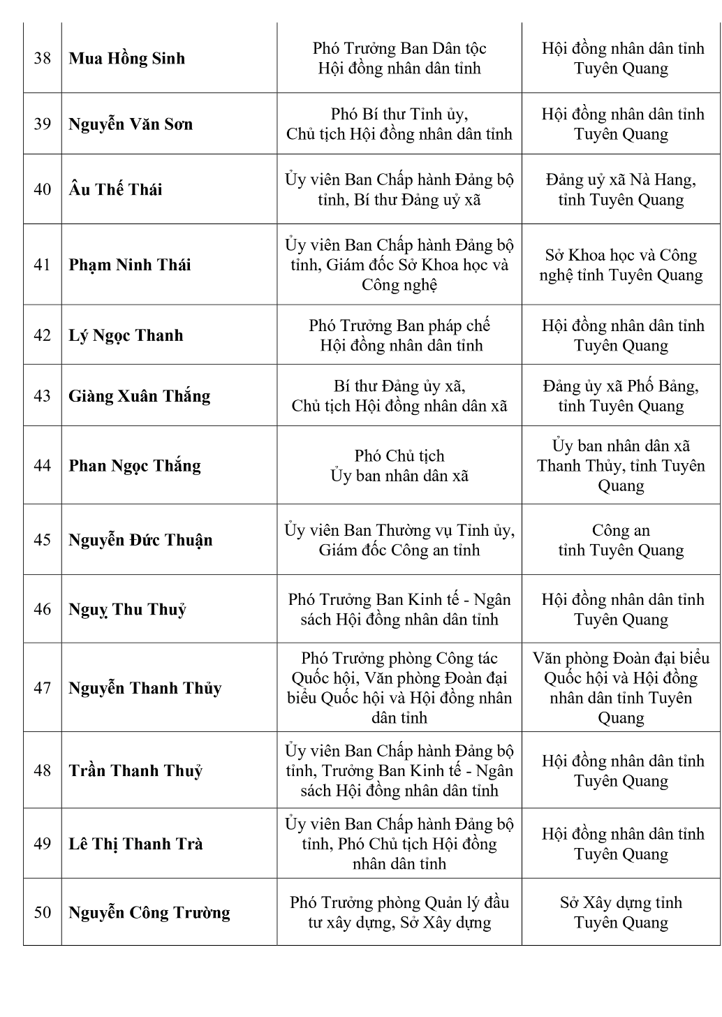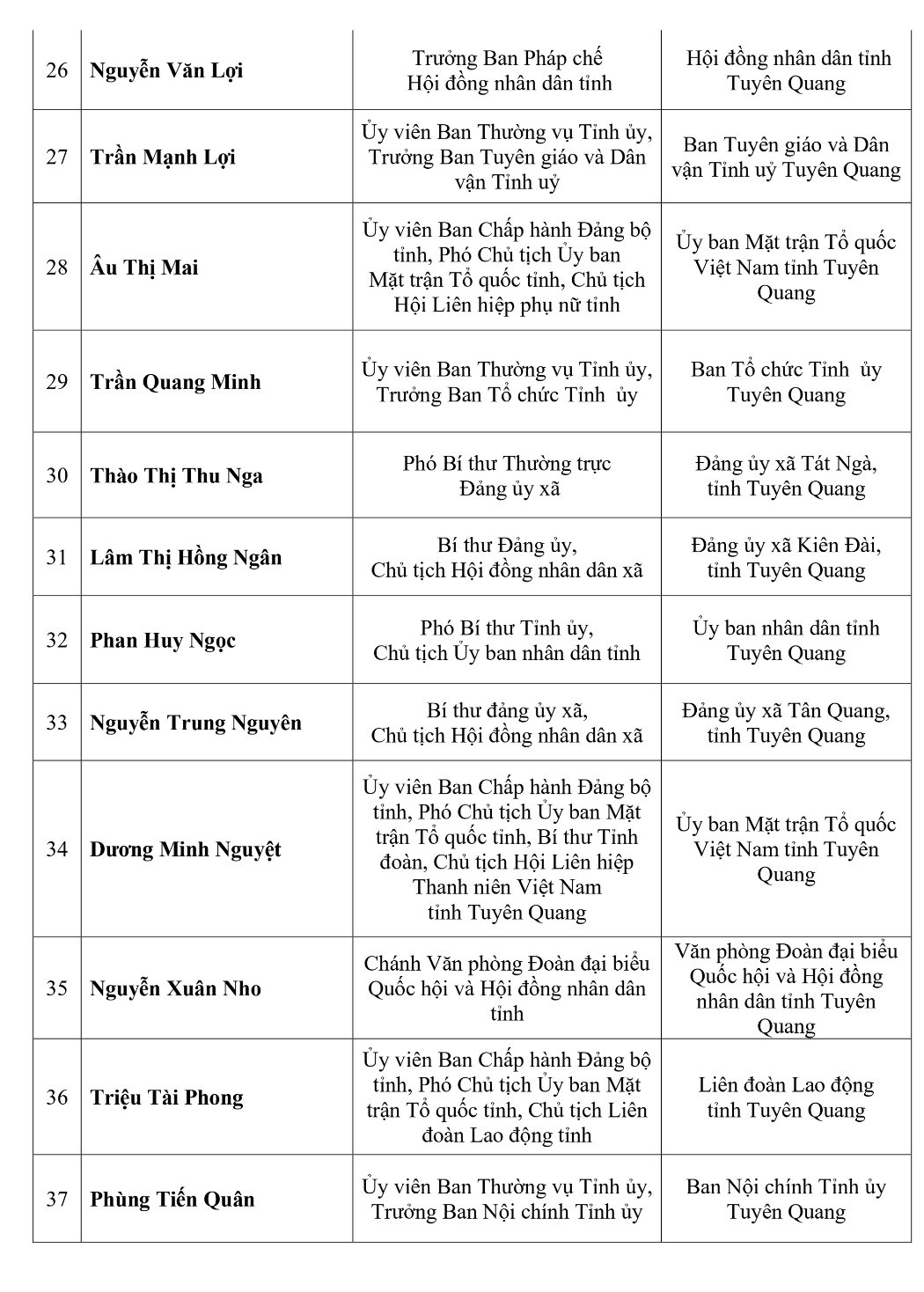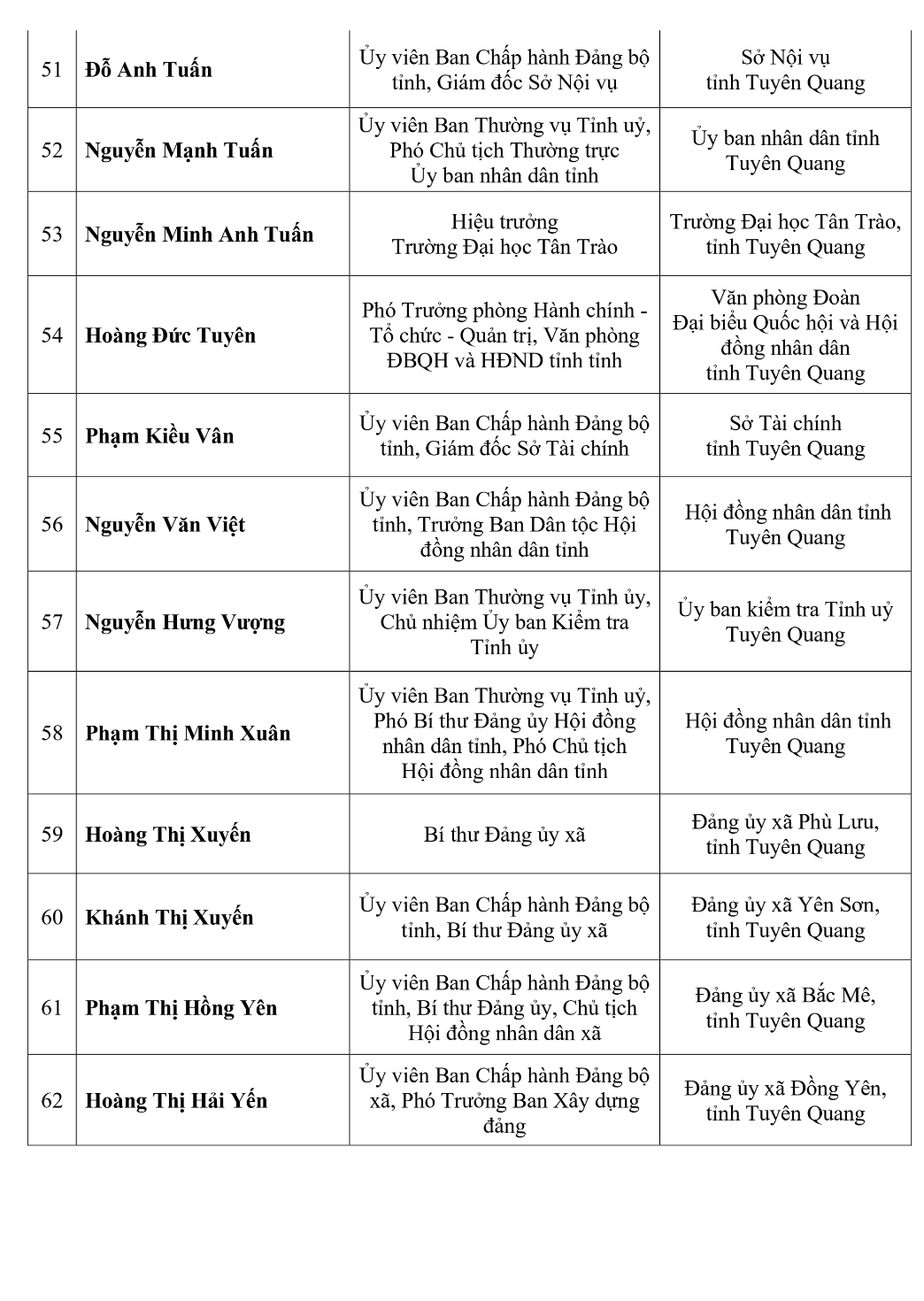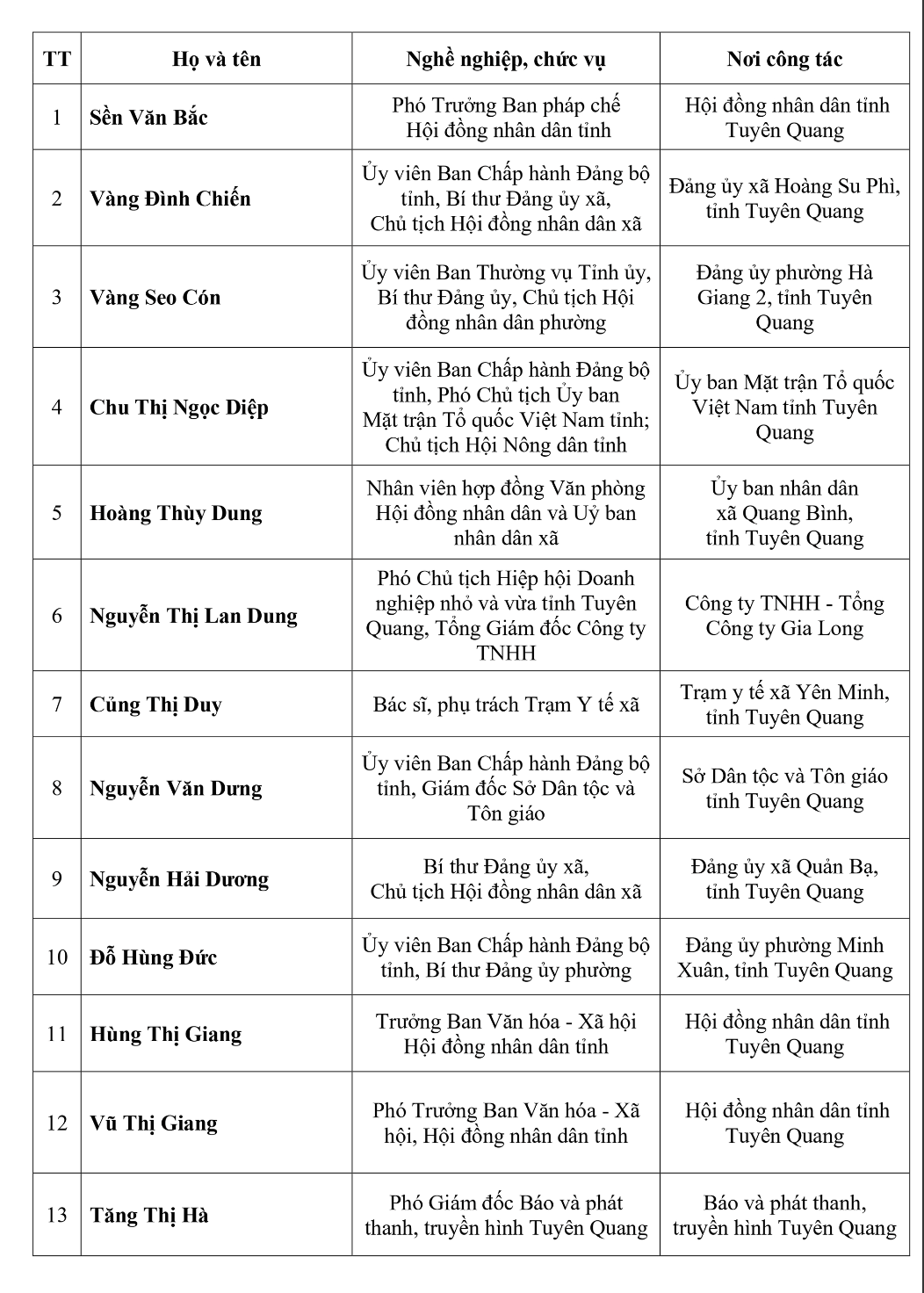 Dưới đây là danh sách 62 đại biểu HĐND tỉnh Tuyên Quang khóa XX, nhiệm kỳ 2026 - 2031: