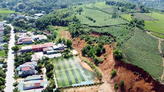 Các khối đất, đá tại đồi Viba đã bị trượt, lún gây nguy hiểm.