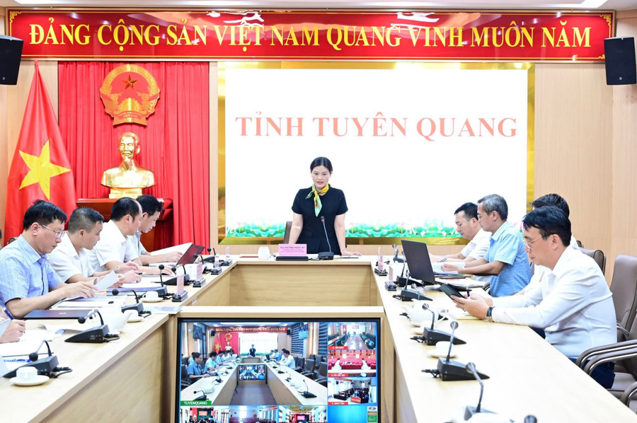 Bà Vương Ngọc Hà, Phó Chủ tịch UBND tỉnh Tuyên Quang chủ trì cuộc họp.