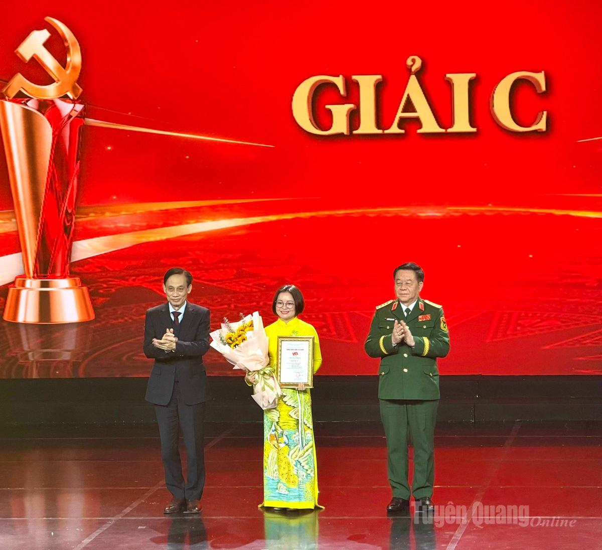 Tác giả Trần Thị Thu Phương, đại diện nhóm tác giả của Báo và phát thanh, truyền hình Tuyên Quang nhận giải C.