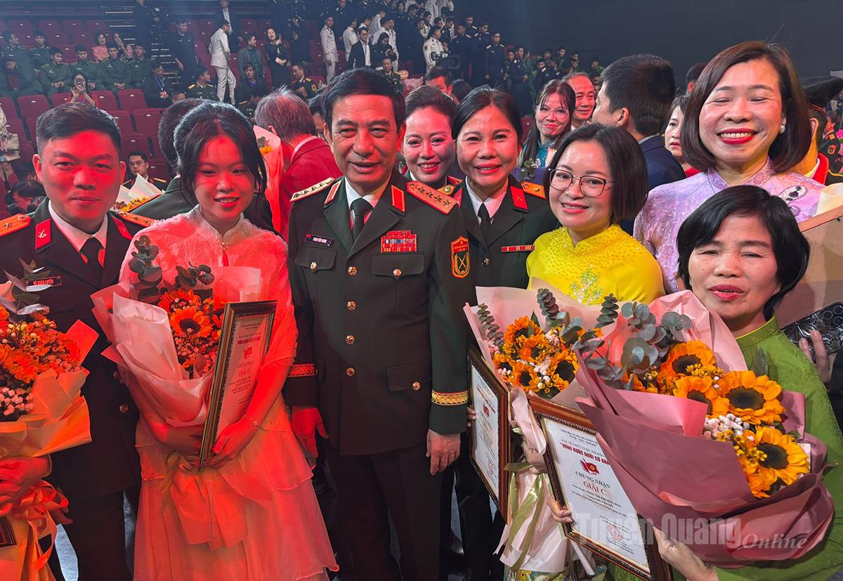 Đại tướng Phan Văn Giang, Ủy viên Bộ Chính trị, Bộ trưởng Bộ Quốc phòng với tác giả đoạt giải.
