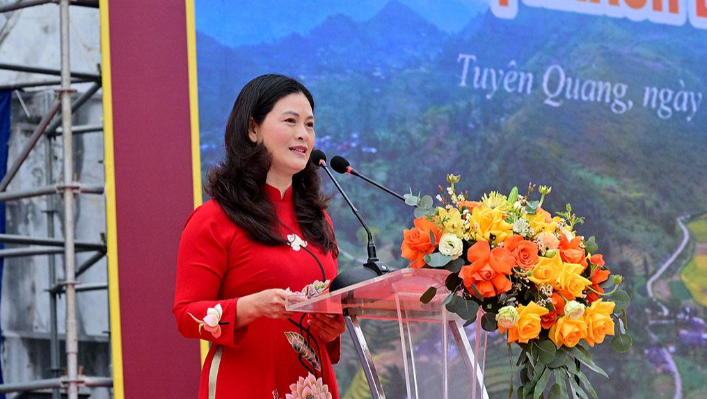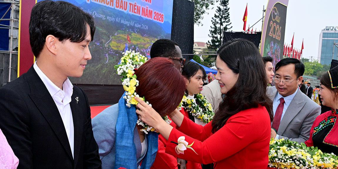 Bà Vương Ngọc Hà, Phó Chủ tịch UBND tỉnh Tuyên Quang nhiệt liệt chào mừng các vị khách du lịch đầu tiên đến với tỉnh trong năm 2026. Bà Hà khẳng định, Tuyên Quang có nhiều tiềm năng, lợi thế về du lịch. Tỉnh xác định du lịch là ngành kinh tế quan trọng của tỉnh.