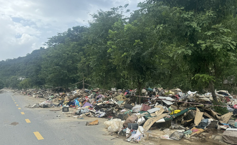 Để xử lý chất thải sau mưa lũ, các phường, xã đã bố trí vị trí tập kết rác thải tạm thời.