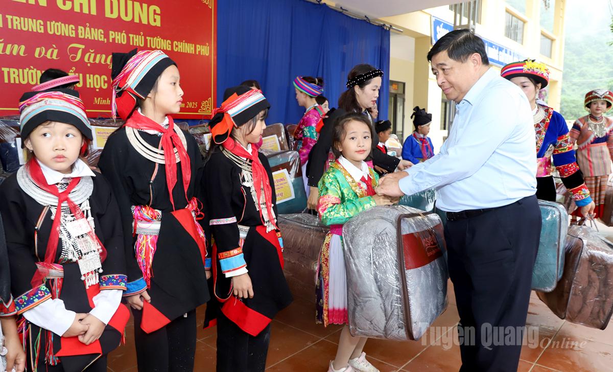 Phó Thủ tướng Chính phủ Nguyễn Chí Dũng tặng quà cho các em học sinh.