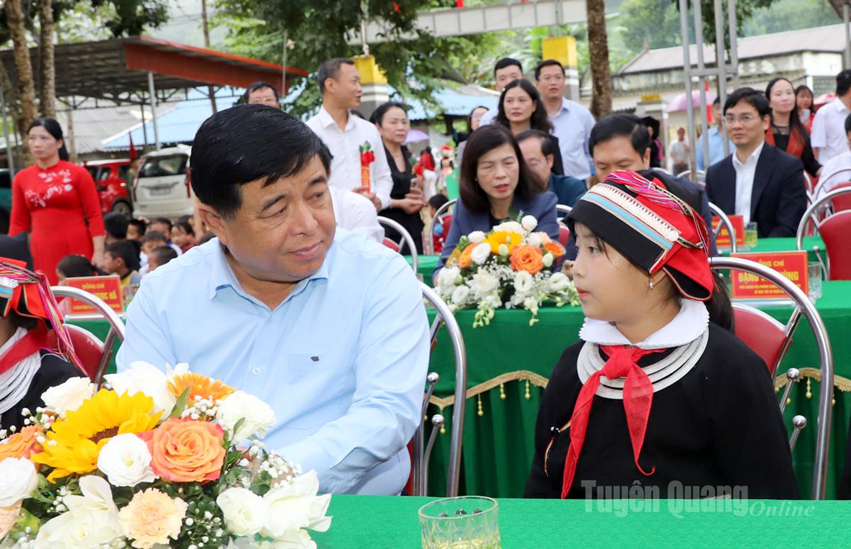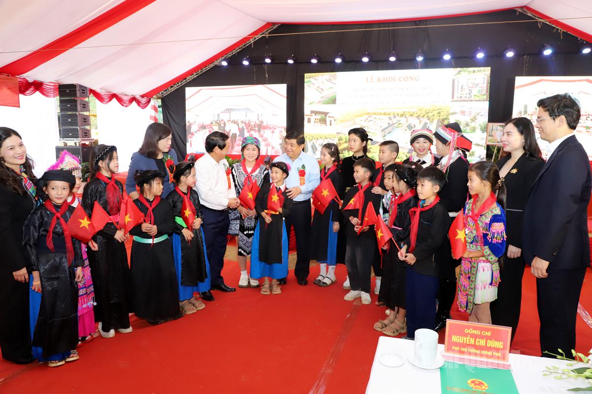 Phó Thủ tướng Chính phủ Nguyễn Chí Dũng dự Lễ khởi công Trường Phổ thông Nội trú liên cấp Tiểu học và Trung học cơ sở Minh Tân. Ảnh: Văn Nghị