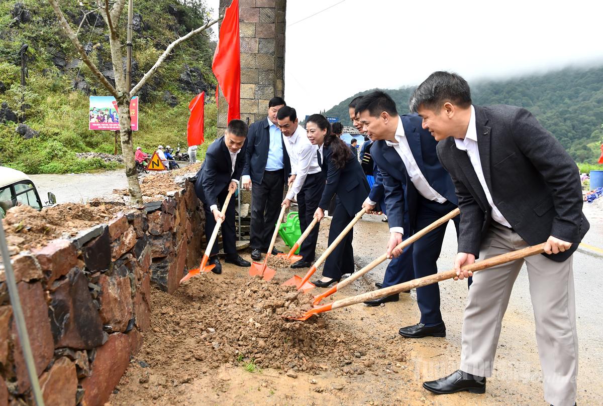 Đồng chí Ma Thế Hồng, Phó Bí thư Tỉnh ủy, Chủ tịch Ủy ban MTTQ tỉnh và các đại biểu thực hiện nghi Lễ động thổ công trình. Ảnh: Văn Long