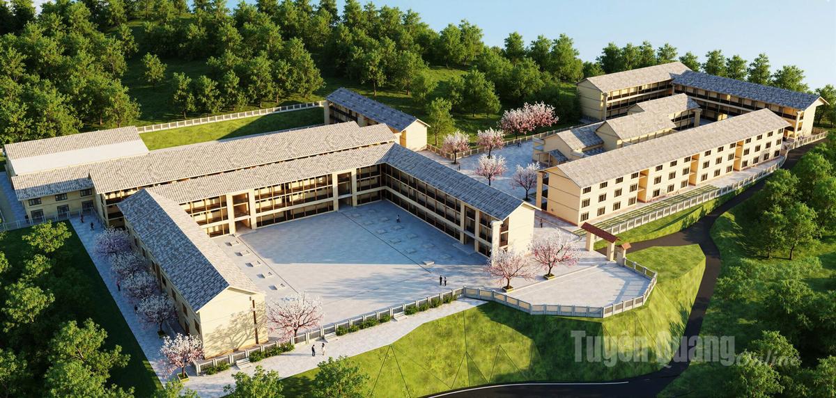 Phối cảnh Công trình Trường Phổ thông nội trú liên cấp Tiểu học và THCS Phố Bảng.