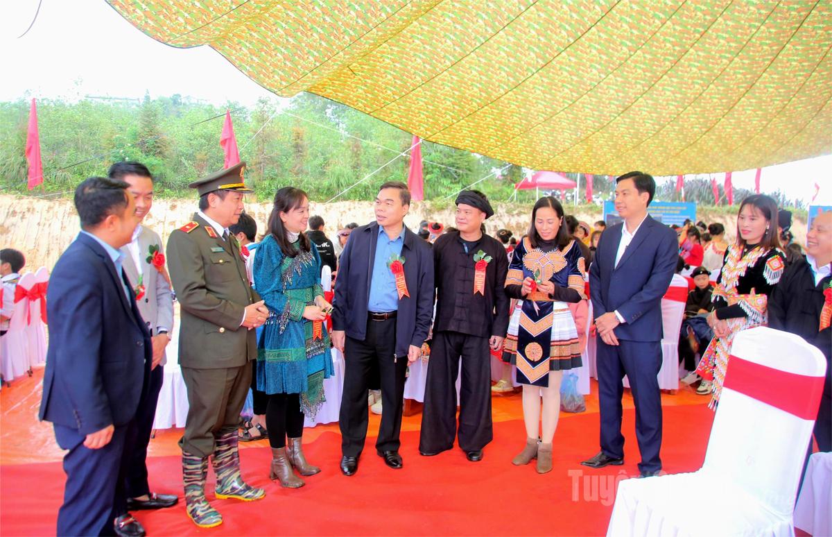 Bí thư Tỉnh ủy Hầu A Lềnh và các đại biểu dự Lễ khởi công Trường Phổ thông Nội trú liên cấp Tiểu học và Trung học cơ sở Minh Tân. Ảnh: Văn Nghị