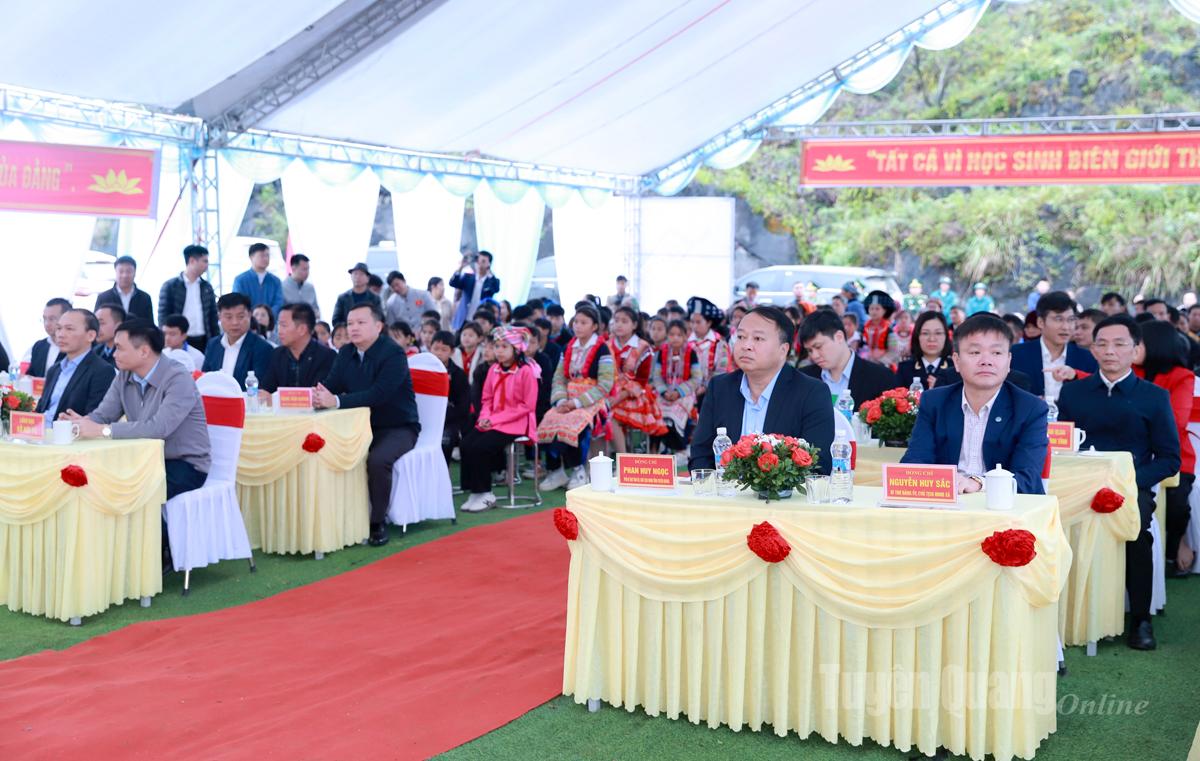 Đại biểu dự Lễ khởi công xây dựng Trường Phổ thông nội trú liên cấp Tiểu học và THCS Pà Vầy Sủ. Ảnh: Hồng Nhung