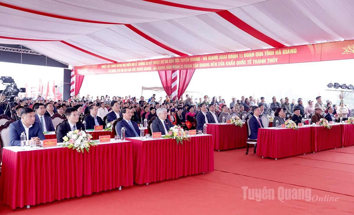 Tới dự tại điểm cầu Lễ động thổ Dự án cao tốc Tuyên Quang – Hà Giang giai đoạn 2 (từ xã Tân Quang đi Cửa khẩu quốc tế Thanh Thủy) và thông xe kỹ thuật Dự án cao tốc Tuyên Quang – Hà Giang giai đoạn 1, về phía Trung ương có các đồng chí: Đỗ Văn Chiến, Ủy viên Bộ Chính trị, Phó Chủ tịch Thường trực Quốc hội; lãnh đạo một số bộ, ngành Trung ương.