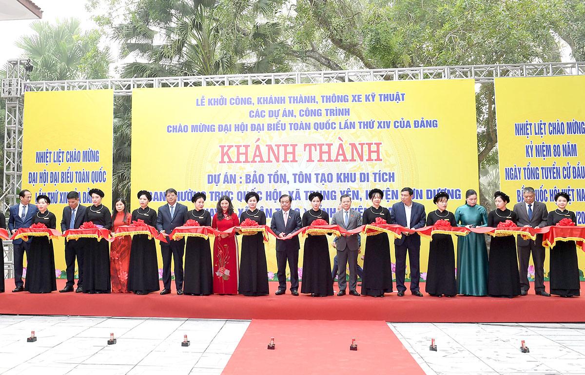 Các đồng chí lãnh đạo và đại biểu cắt băng khánh thành Dự án Bảo tồn, tôn tạo Khu di tích Ban Thường trực Quốc hội.