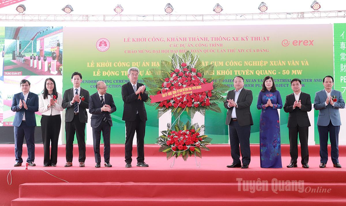 Dự buổi lễ có các đồng chí: Phan Huy Ngọc, Phó Bí thư Tỉnh ủy, Chủ tịch UBND tỉnh; Phạm Thị Minh Xuân, Ủy viên BTV Tỉnh ủy, Phó Chủ tịch HĐND tỉnh; Nguyễn Hưng Vượng, Ủy viên BTV Tỉnh ủy, Chủ nhiệm Ủy ban Kiểm tra Tỉnh ủy; Vân Đình Thảo, Ủy viên BTV Tỉnh ủy, Trưởng ban Quản lý các Khu công nghiệp và Khu kinh tế tỉnh; lãnh đạo các sở, ban, ngành của tỉnh Tuyên Quang; lãnh đạo và Nhân dân xã Xuân Vân. Về phía Chủ đầu tư – Tập đoàn Erex (Nhật Bản) có ông Tomoki Kakuta, Thành viên Hội đồng quản trị, Giám đốc điều hành; ông Saito Yasushi, Tổng Giám đốc Erex Việt Nam.