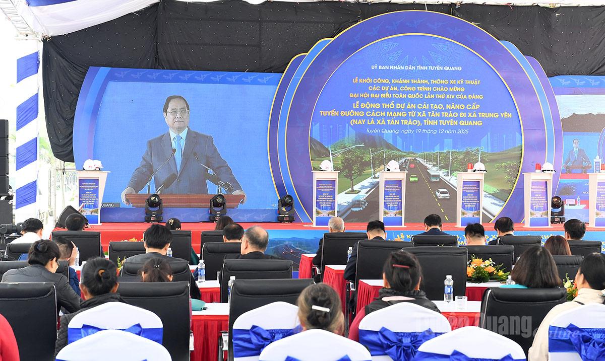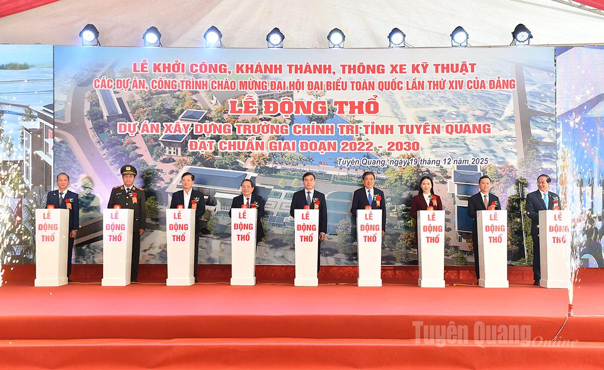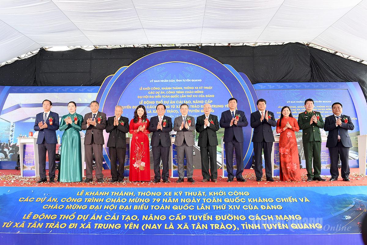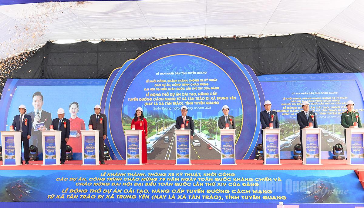 Cùng với các dự án được khởi công, động thổ, khánh thành hôm nay, tính từ ngày 15 - 19/12/2025, tỉnh Tuyên Quang đã tổ chức Lễ khởi công, động thổ, khánh thành và thông xe kỹ thuật 12 dự án, gồm 5 dự án đầu tư công và 7 dự án đầu tư ngoài ngân sách. Tổng mức đầu tư các dự án 27.950 tỷ đồng; trong đó dự án đầu tư công là 21.427 tỷ đồng; dự án đầu tư ngoài ngân sách là 6.523 tỷ đồng. Đây là những công trình thiết thực chào mừng Đại hội đại biểu toàn quốc lần thứ XIV của Đảng.
