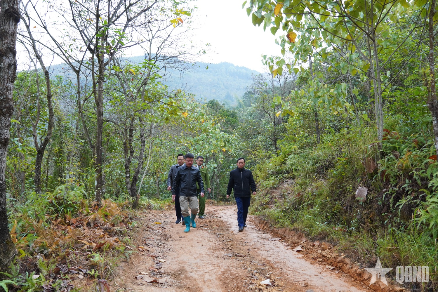Lãnh đạo xã Sơn Vĩ (Tuyên Quang) khảo sát thực địa tuyến đường trước khi triển khai xây dựng.