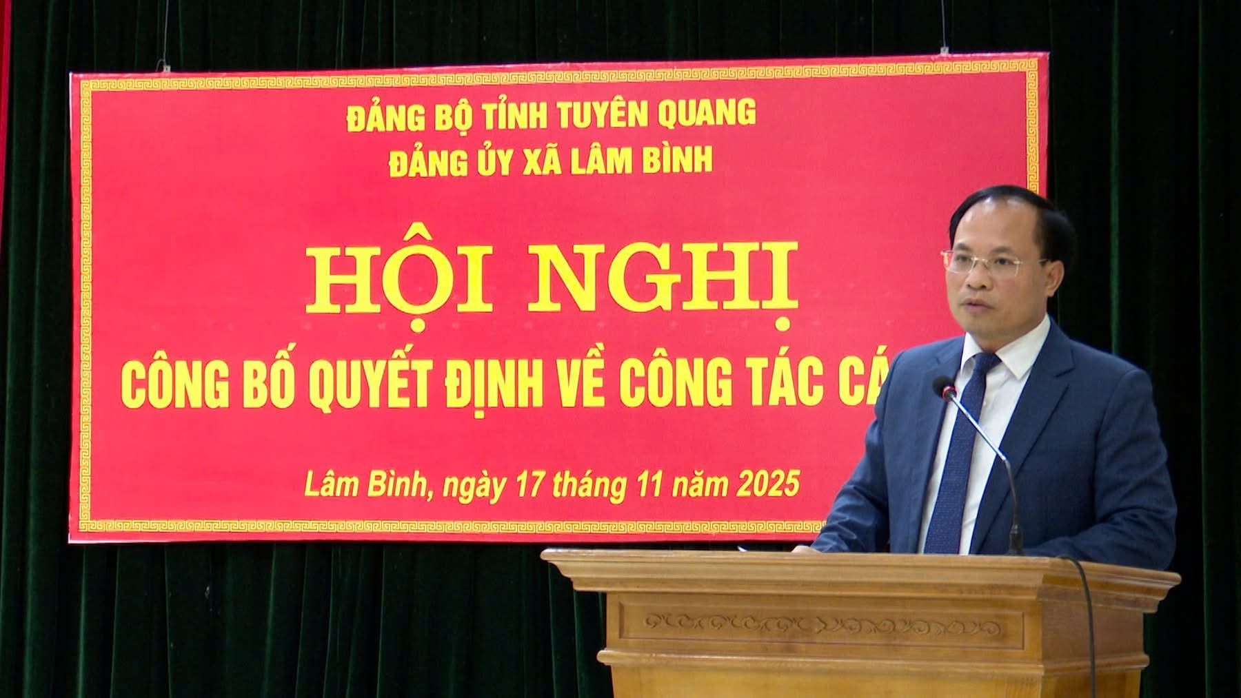 Tại buổi lễ, đại diện Ban Tổ chức Tỉnh ủy Tuyên Quang đã công bố các quyết định của Ban Thường vụ Tỉnh ủy về việc phân công, điều động đồng chí Âu Thế Thái, Ủy viên Ban Chấp hành Đảng bộ tỉnh, Bí thư Đảng ủy xã Lâm Bình thôi tham gia Ban Chấp hành Đảng bộ, Ban Thường vụ Đảng ủy, thôi giữ chức vụ Bí thư Đảng ủy xã Lâm Bình, phân công điều động nhận công tác tại Đảng ủy xã Nà Hang, chỉ định tham gia Ban Chấp hành Đảng bộ, Ban Thường vụ, giữ chức vụ Bí thư Đảng ủy xã Nà Hang, nhiệm kỳ 2025-2030.