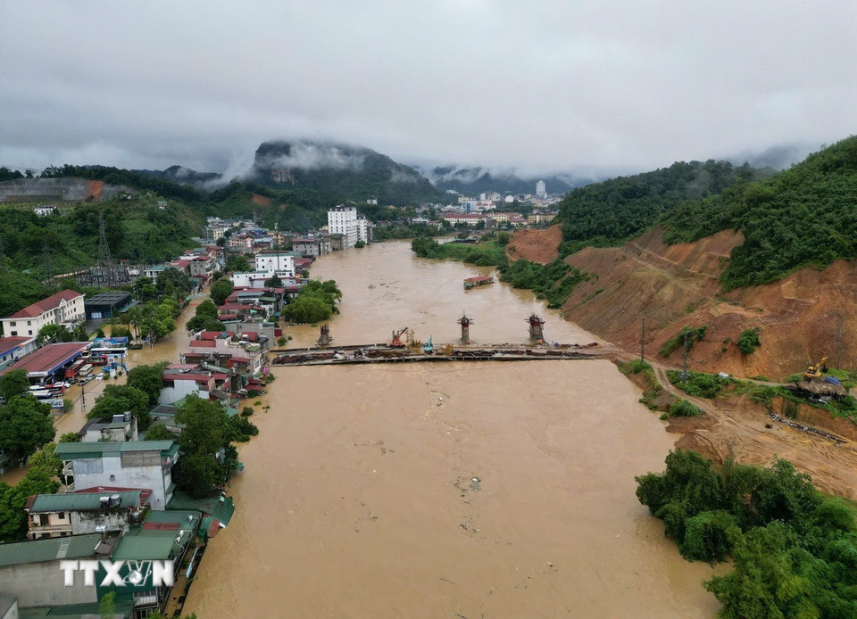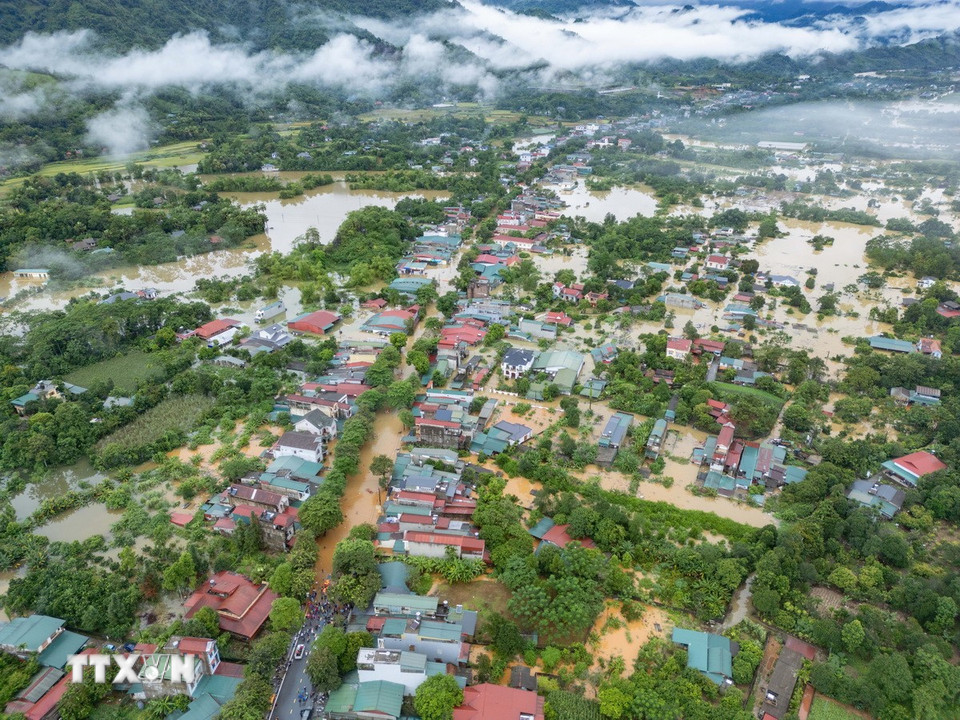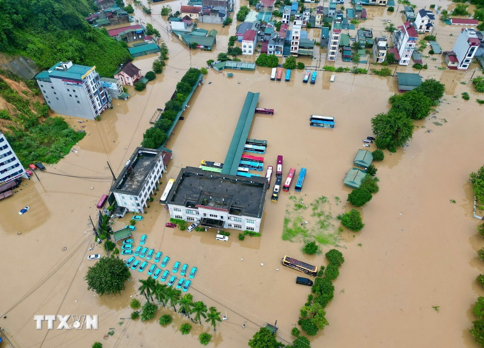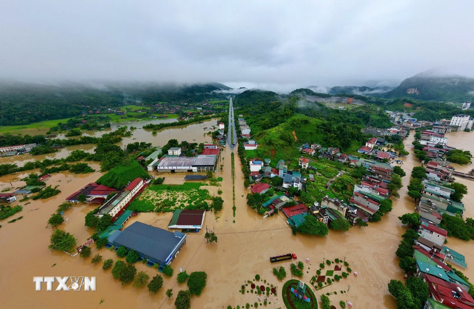 Ngập lụt trên diện rộng ở các phường Hà Giang 1, 2 (Tuyên Quang). (Ảnh: TTXVN phát)