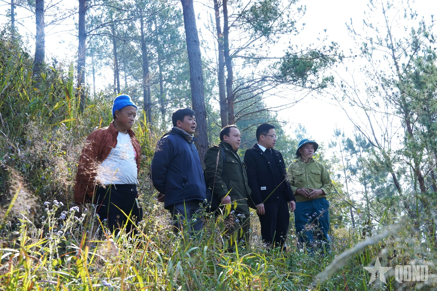 Lãnh đạo xã Sơn Vĩ, tỉnh Tuyên Quang cùng các lực lượng kiểm tra thực địa, chủ động phòng, chống cháy rừng tại khu vực trọng điểm.