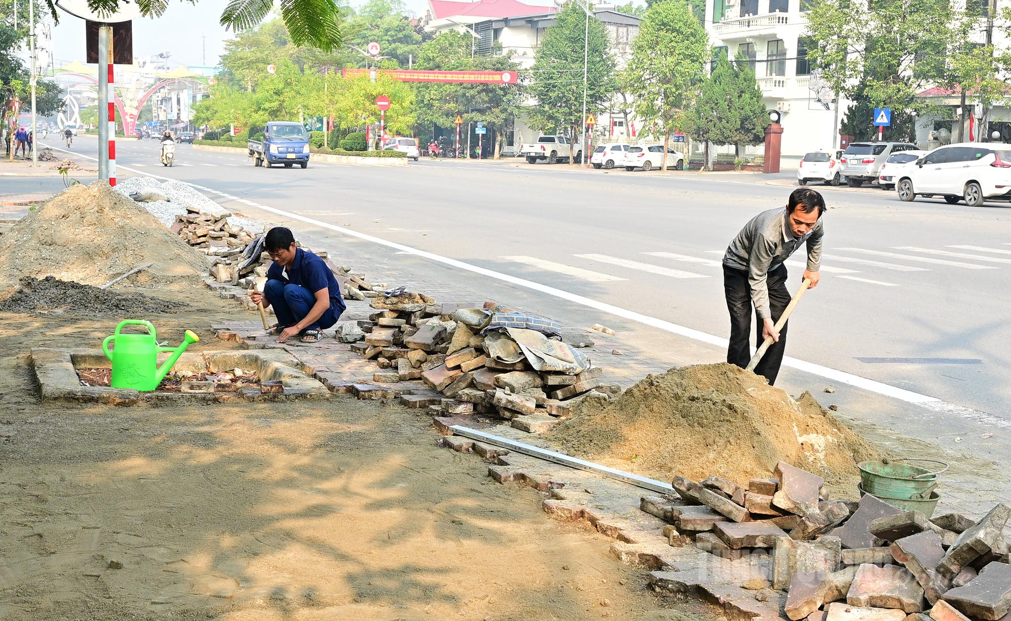 Công tác chỉnh trang lại lề đường cũng được thi công khẩn trương trên tuyến đường Đại lộ Tân Trào.