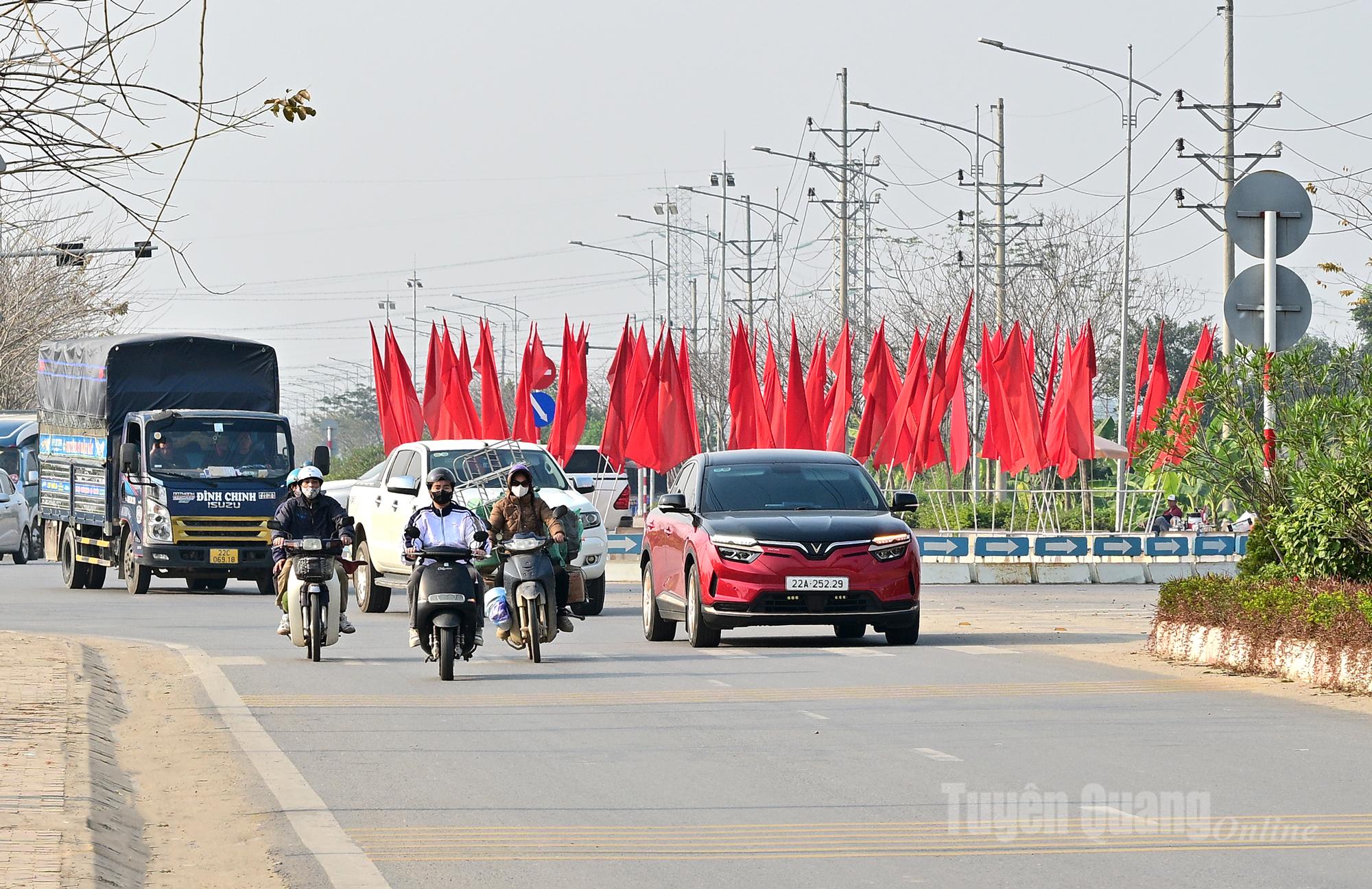 Các trục đường chính của phường Minh Xuân, phường trung tâm của tỉnh Tuyên Quang rực rỡ cờ hoa.