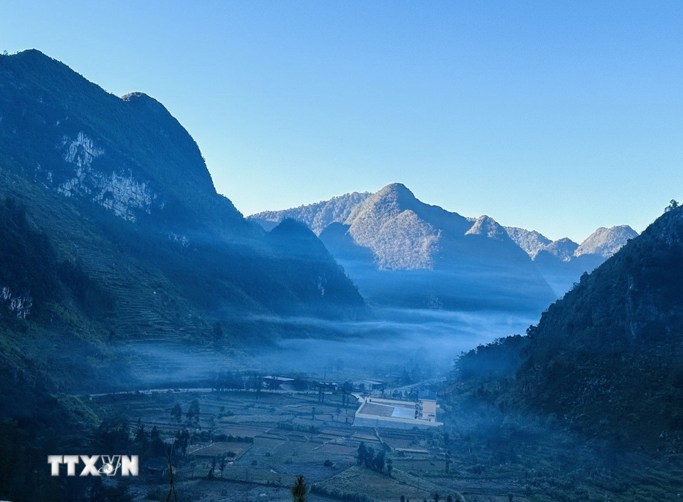 Màn sơn mờ ảo trong buổi sáng lạnh buốt ở xã Đồng Văn. (Ảnh: Đức Thọ/TTXVN.)