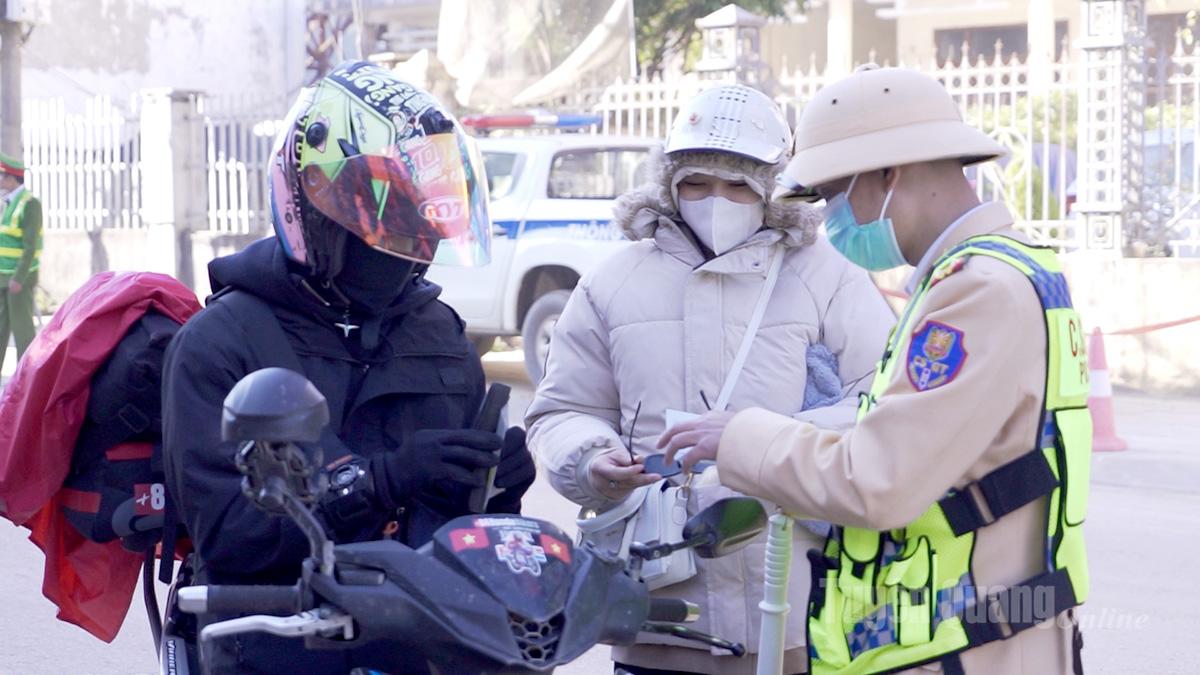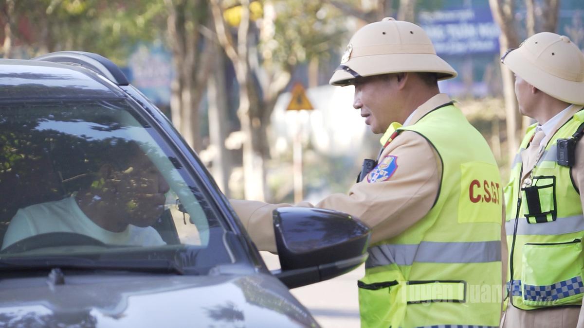 Cảnh sát giao thông kiểm tra nồng độ cồn người điều khiển phương tiện.