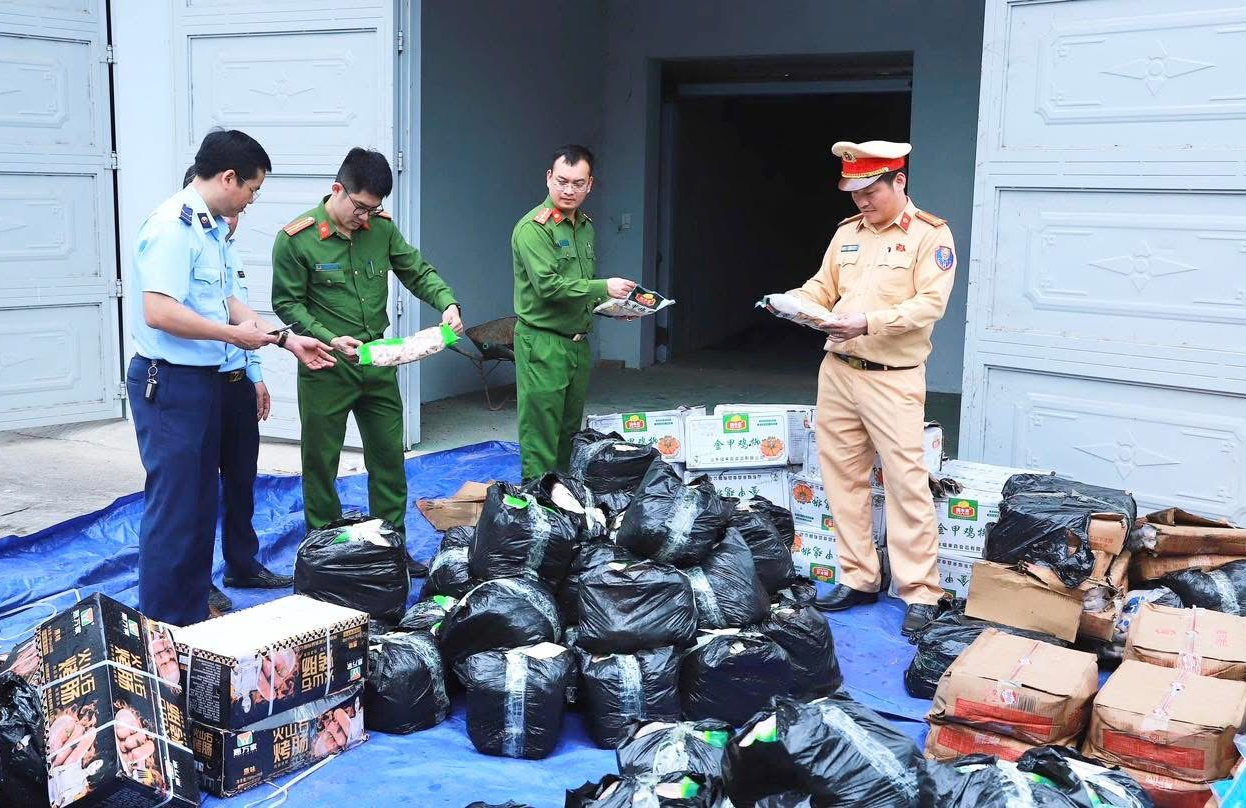 Lực lượng CSGT kiểm tra phát hiện hai phương tiện vận chuyển hơn 2,3 tấn xúc xích không rõ nguồn gốc.