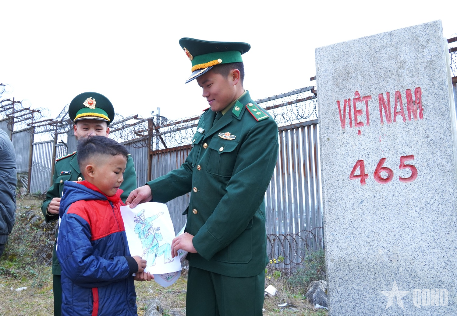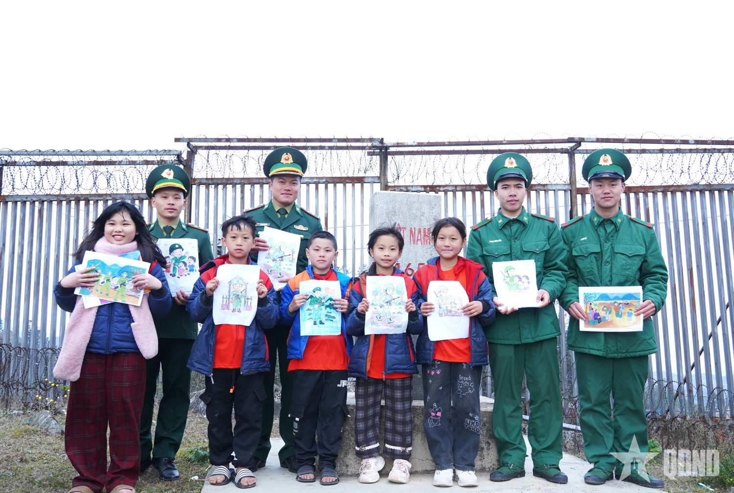 Các em cũng trao tặng những bức tranh, lá thư tự tay chuẩn bị, như lời cảm ơn gửi tới cán bộ, chiến sĩ nơi biên cương.