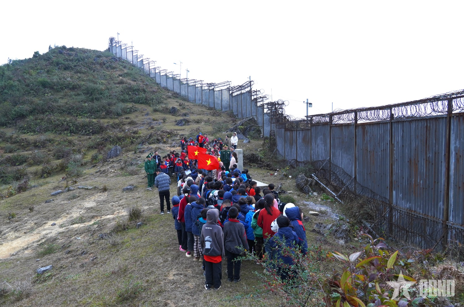 Trong khuôn khổ chương trình, học sinh tham gia hoạt động “Vì biên cương xanh, sạch, đẹp”, cùng thầy cô và cán bộ, chiến sĩ biên phòng vệ sinh khu vực xung quanh cột mốc và đường dẫn lên mốc.