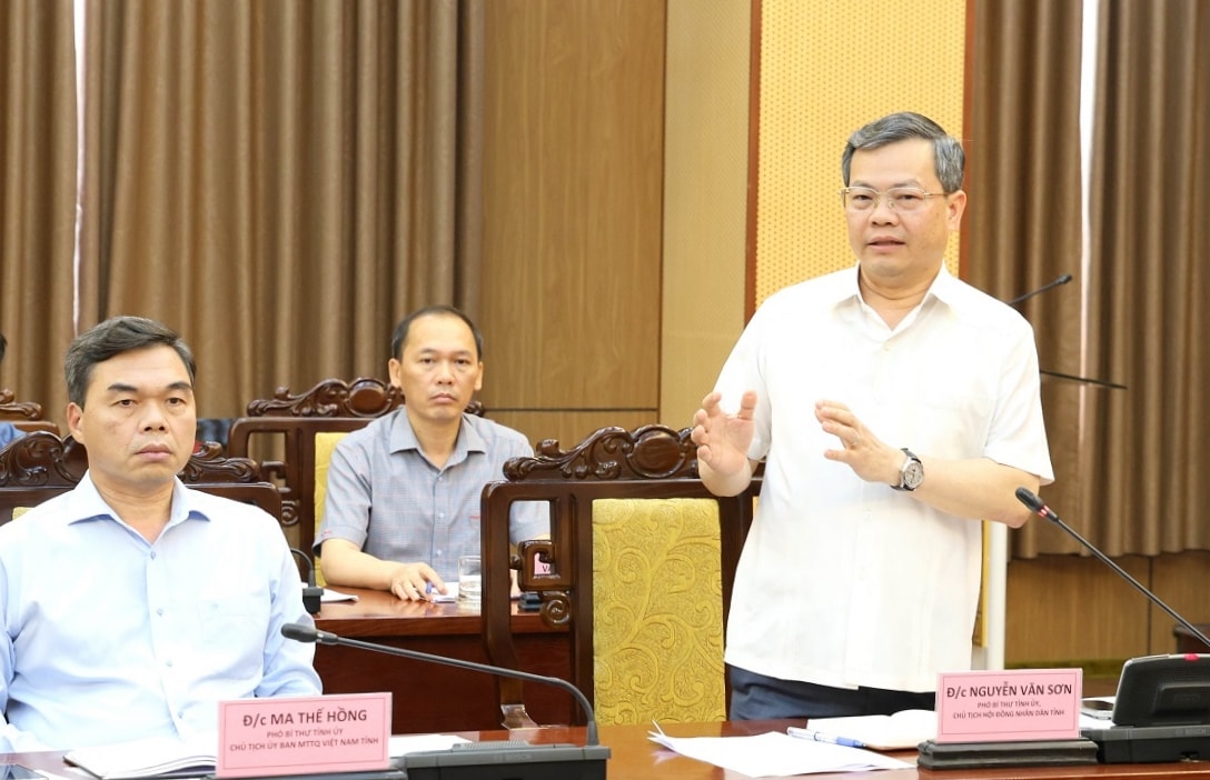 Phó Bí thư Tỉnh ủy, Chủ tịch HĐND tỉnh Nguyễn Văn Sơn phát biểu tại cuộc họp. Ảnh: CTTĐT