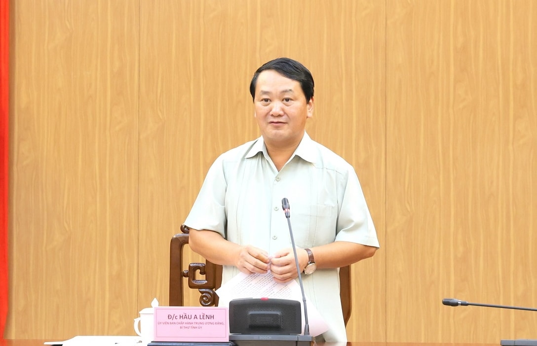 Bí thư Tỉnh ủy Hầu A Lềnh phát biểu chỉ đạo tại cuộc họp. Ảnh: CTTĐT