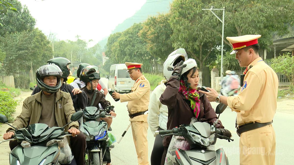 Lực lượng Lực lượng CSGT, Công an tỉnh Tuyên Quang kiểm tra nồng độ cồn người tham gia giao thông