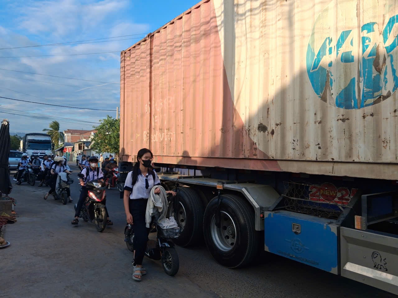 Giờ cao điểm, học sinh tan trường khiến cho tuyến đường càng trở nên đông đúc, nguy cơ mất an toàn giao thông