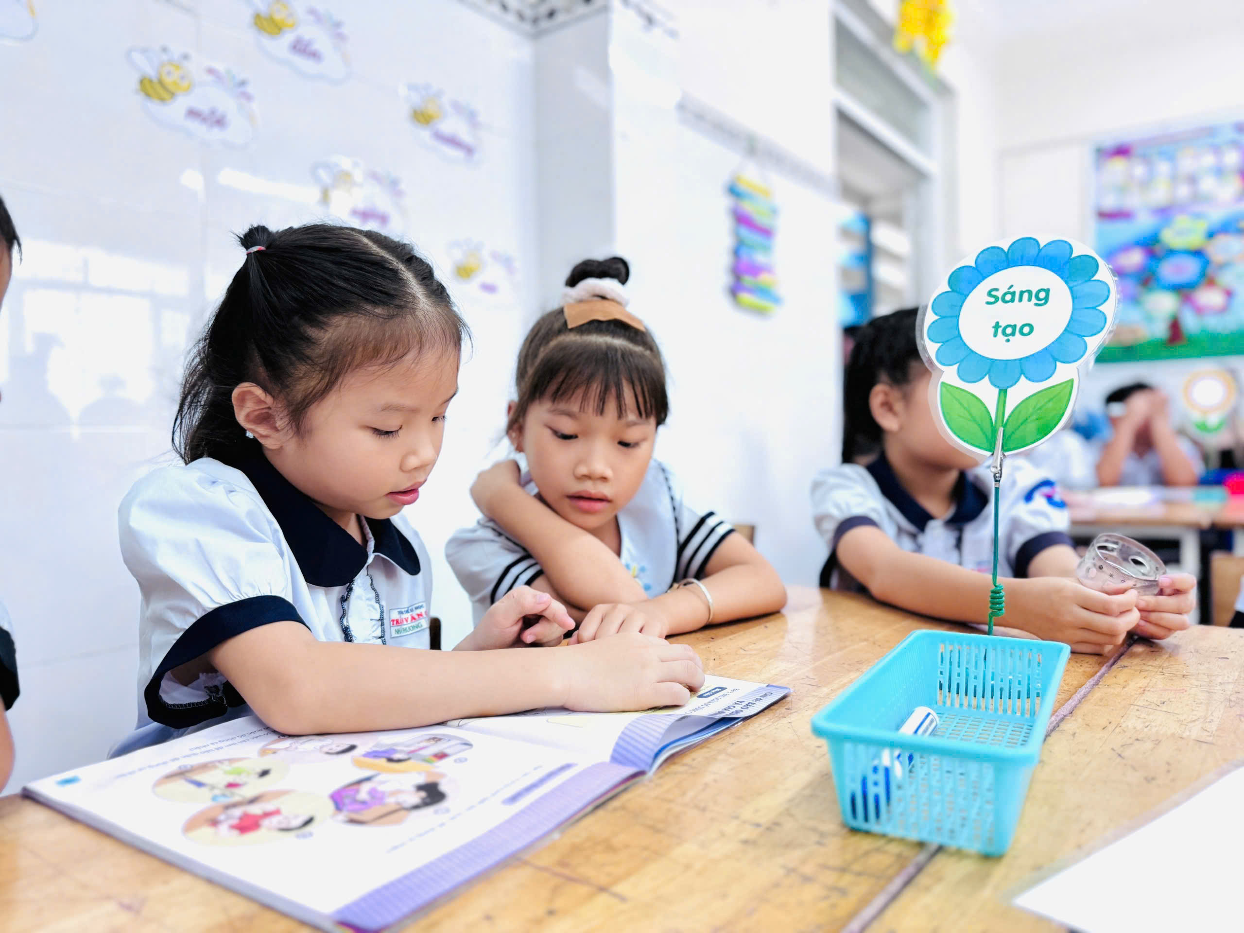 Học sinh Trường Tiểu học Trần Văn Ơn, phường Đông Hưng Thuận, trong một giờ học. Ảnh: NGUYỄN QUYÊN
