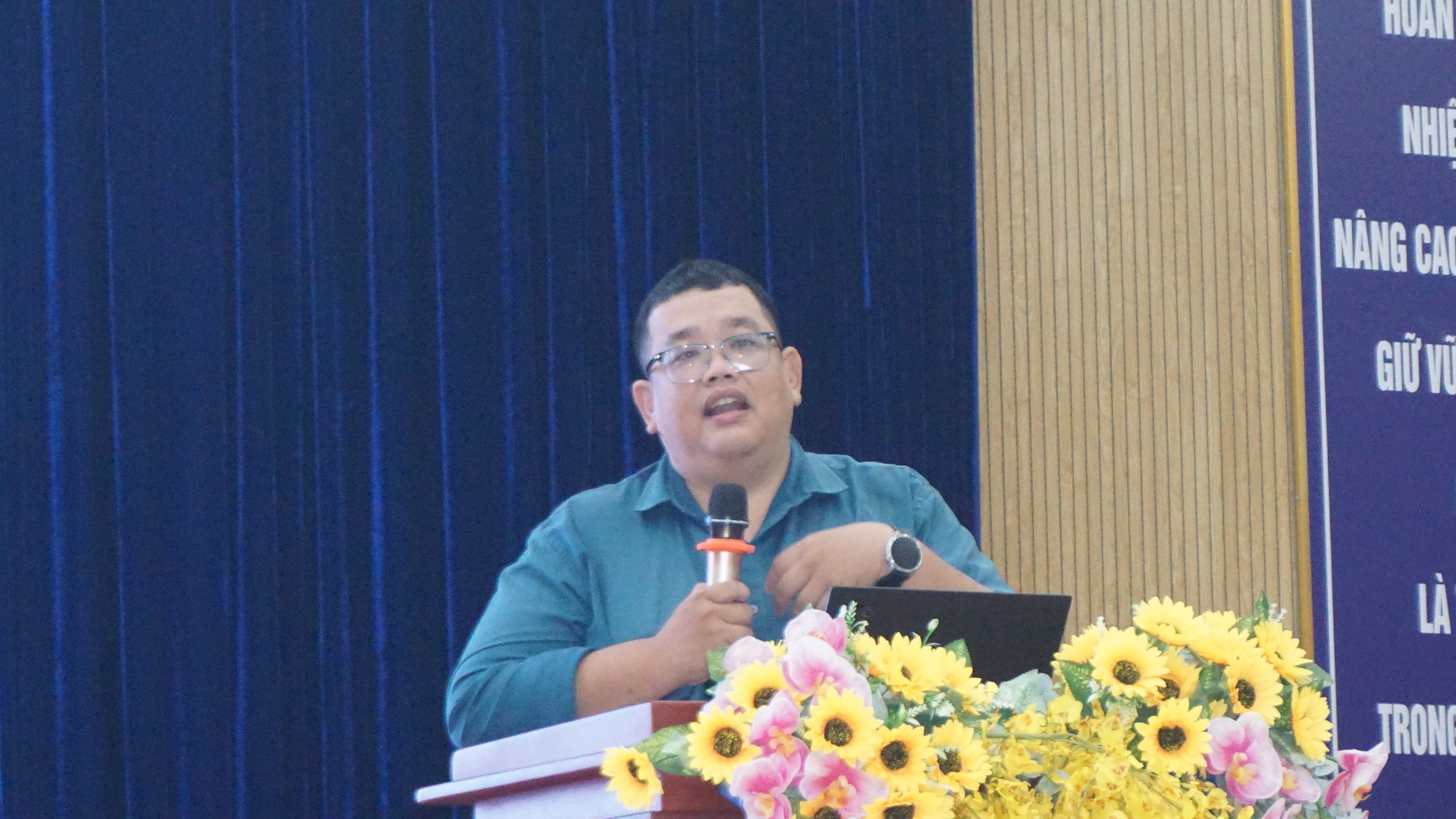 Ông Nguyễn Võ Đăng Khoa, Phó Trưởng Phòng Quản lý chất lượng (Sở GD&ĐT TP.HCM) chia sẻ tại hội nghị. Ảnh: NQ