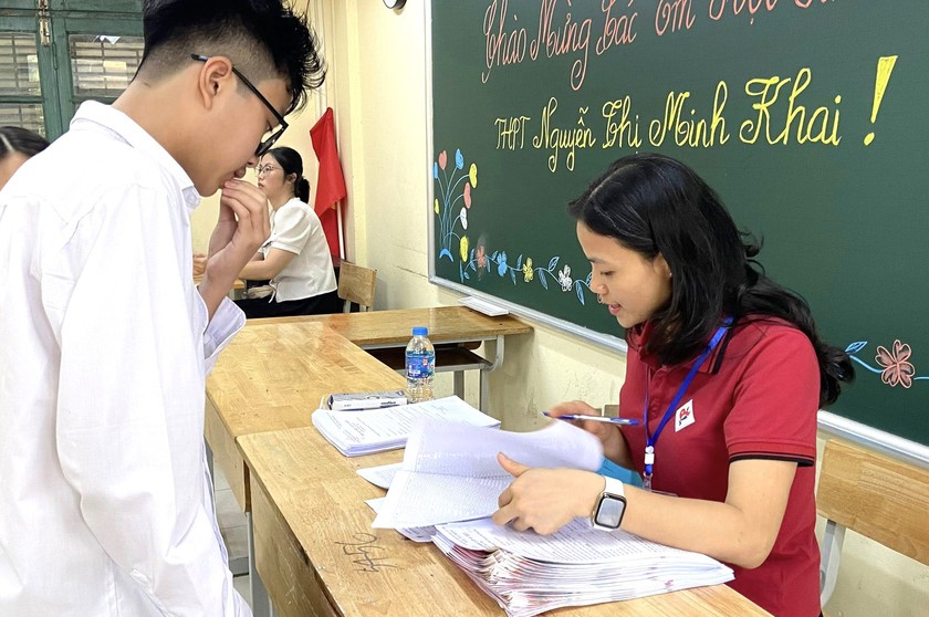 Học sinh làm thủ tục nhập học tại Trường Trung học Phổ thông Nguyễn Thị Minh Khai sau khi hoàn thành xuất sắc kỳ thi tuyển sinh vào lớp 10 Hà Nội. Ảnh: Trường Trung học Phổ thông Nguyễn Thị Minh Khai