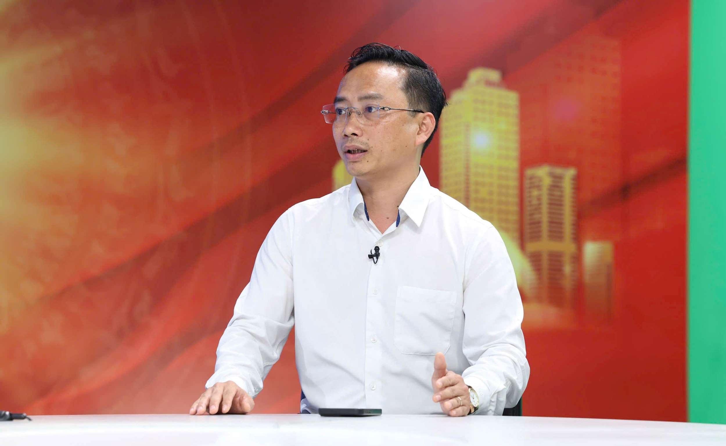 Ông Nghiêm Văn Bình, Trưởng phòng Quản lý thi và Kiểm định chất lượng (Sở Giáo dục và Đào tạo Hà Nội) trao đổi tại chương trình. Ảnh: Thanh Hải